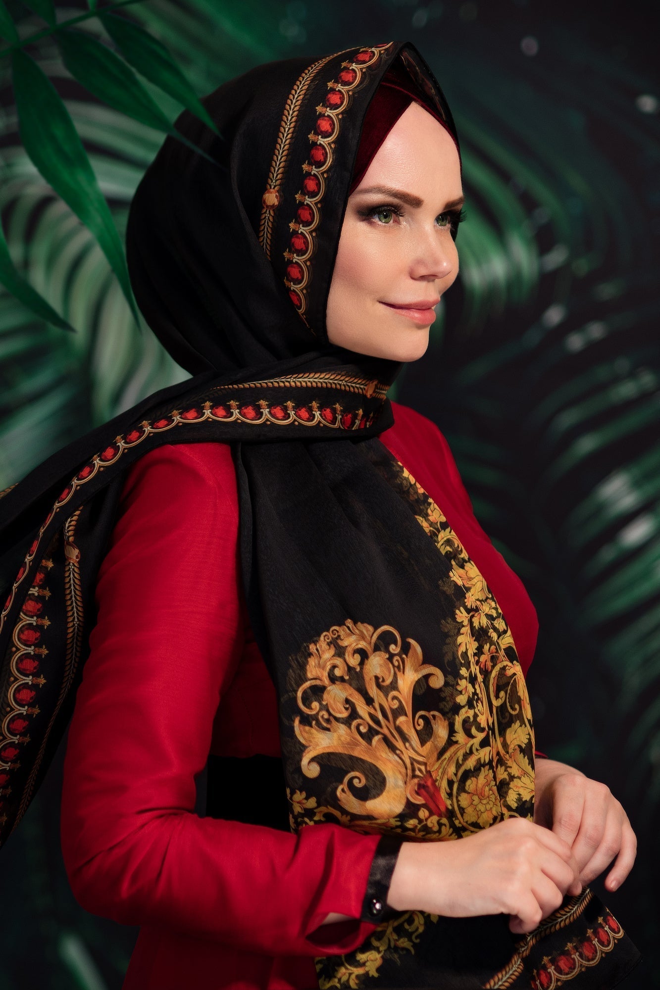 And today Amina Fedorenko presents her new exclusive collection of hijabs. This work has been done with special love and attention to details. By carefully selecting colour combination and mixing animalistic motifs and elements of stylized plant shapes, precious stones gained tangible volume. Each hijab is unique.